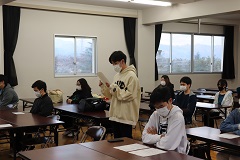 山梨県立巨摩高等学校定時制 > 活動の様子 > 対面式 2021年4月9日カテゴリー: 活動の様子 対面式 入学式の翌日の4月9日(金)、会議室で対面式を行いました。 この日初めて、今年度の生徒全員(24名)が顔を揃えます。 生徒会長が歓迎の言葉を述べたあと、新入生代表が挨拶をしました。 その後、全員が一人ずつ自己紹介をして、最後に互礼を交わしました。