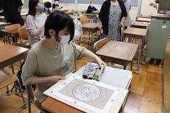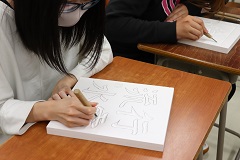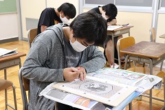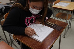 作品作りは定通総体が終わってから始めていて、地域の方に来ていただいて指導を受けた時もあります。作っているのは、1年と3年が切子、2年が甲州凧、4年が刻字です。