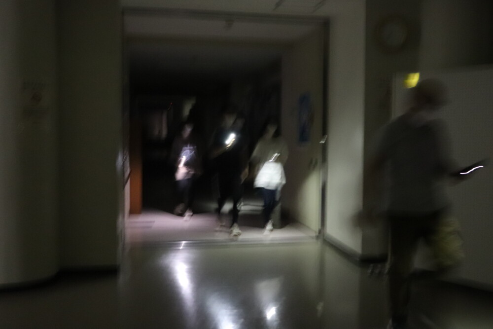 スマートフォンのライトを点燈して避難するということをしてみました。