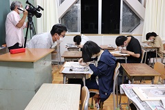 9月16日(木)は、どの学年も外部の方が指導にきてくださいました。また、1,3年生が取り組んでいる「切子」については、YBS山梨放送から取材も入りました。「六角堂 沢登の切子」に関する番組の中で、本校の切子作りの様子も取り上げられることになったためです。