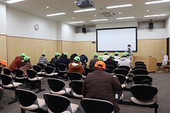 最初にショールーム「ふれ愛の館」で会社の概要を説明していただいた後